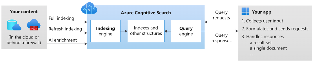 Figure 1: High-level architecture of Azure Cognitive Search – Source: https://learn.microsoft.com/en-us/azure/search/search-what-is-azure-search